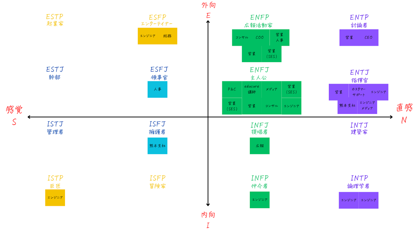 しかし、ロジカルタイプ(管理者、建築家など)が不在のため、制度設計・細かな運用の詰めに甘さが出やすい、言いたいことを遠慮してしまう傾向があるそうです。