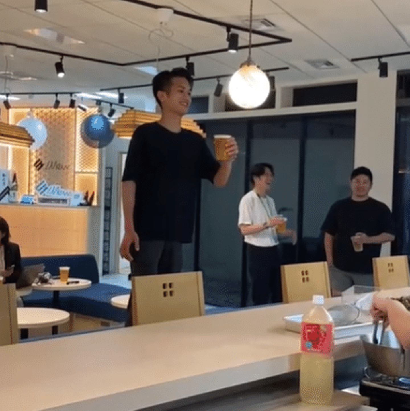 (ちょうどドリンクをあげてるところを載せたかったけど、ちょうどライトと顔が被ってモザイクになっちゃったので、乾杯前&画質悪くてごめんなさい!笑)
