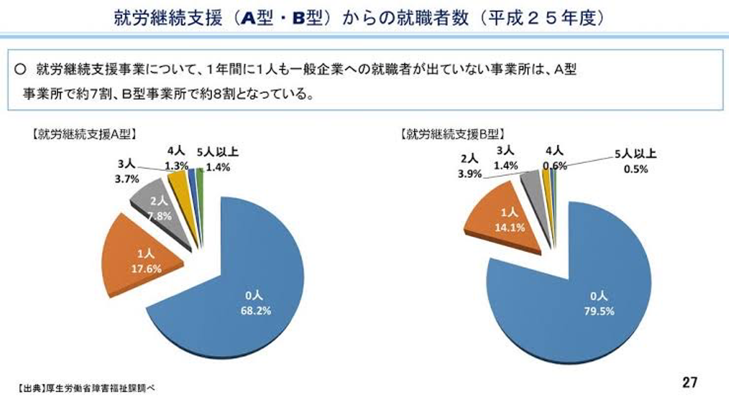 こんなデータがありますA型で5人以上の就職を出す事業所は全体の1.4%全体の70%近くは年間0人しか就職に出せていません。。。