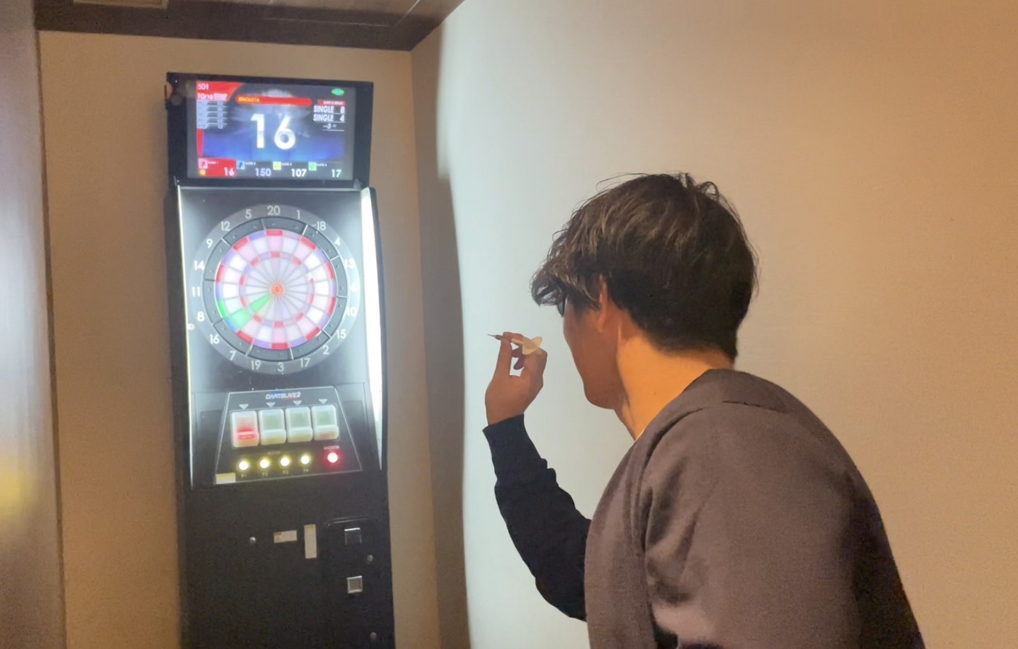 部屋の中でカラオケとダーツができる部屋で飲み直し!