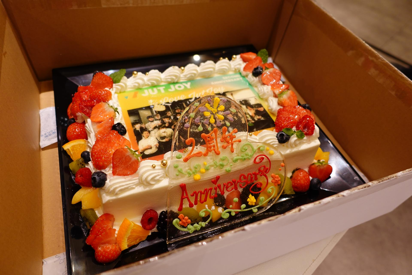 そしてこの豪華なケーキは、Maison Marcの葉倉さんよりプレゼントしていただきました!とても素敵なケーキをありがとうございます!プリントされている写真は1期目の周年祭のものです。