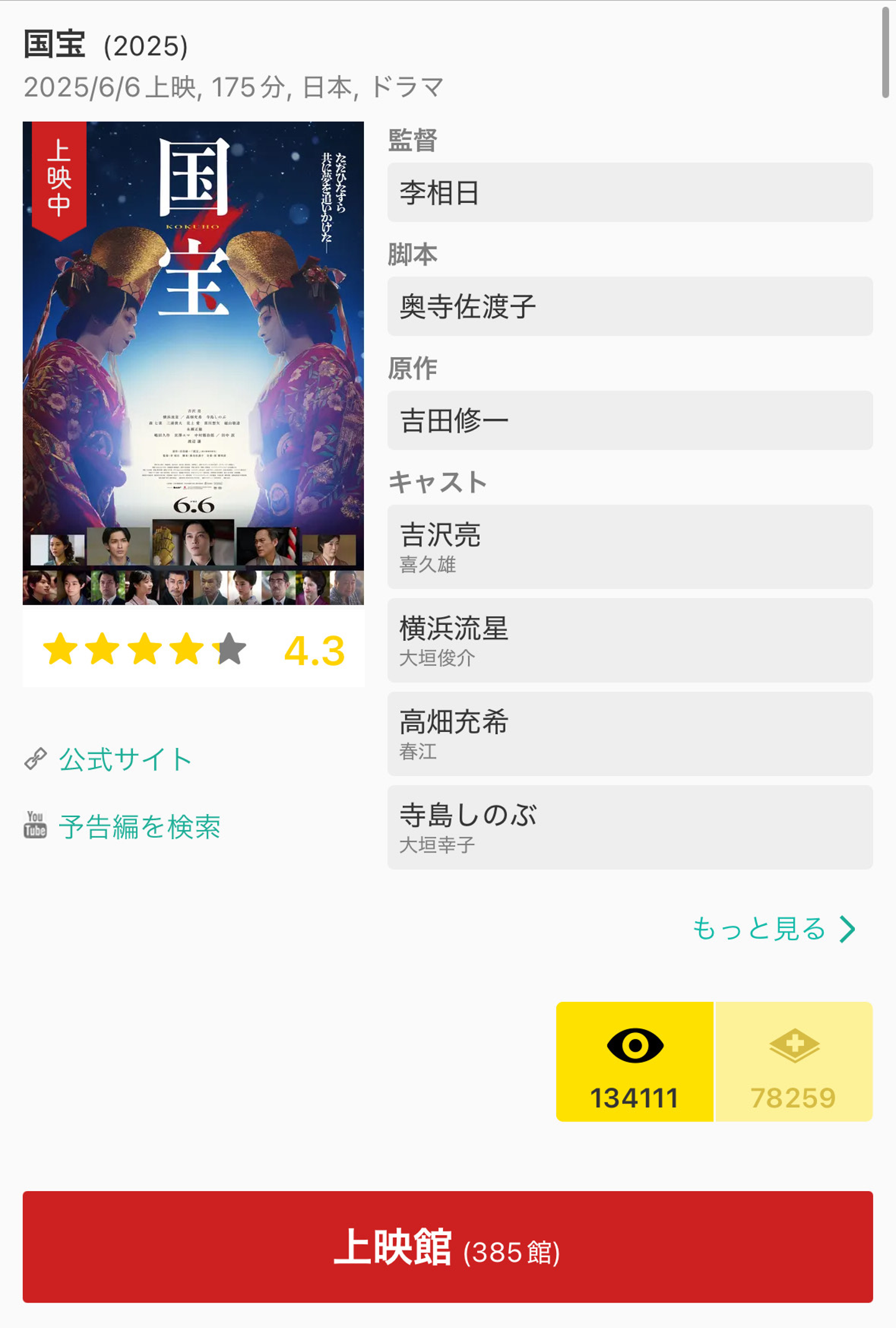 先日、福利厚生にある映画鑑賞の割引券を活用して「国宝」を見てきました!
