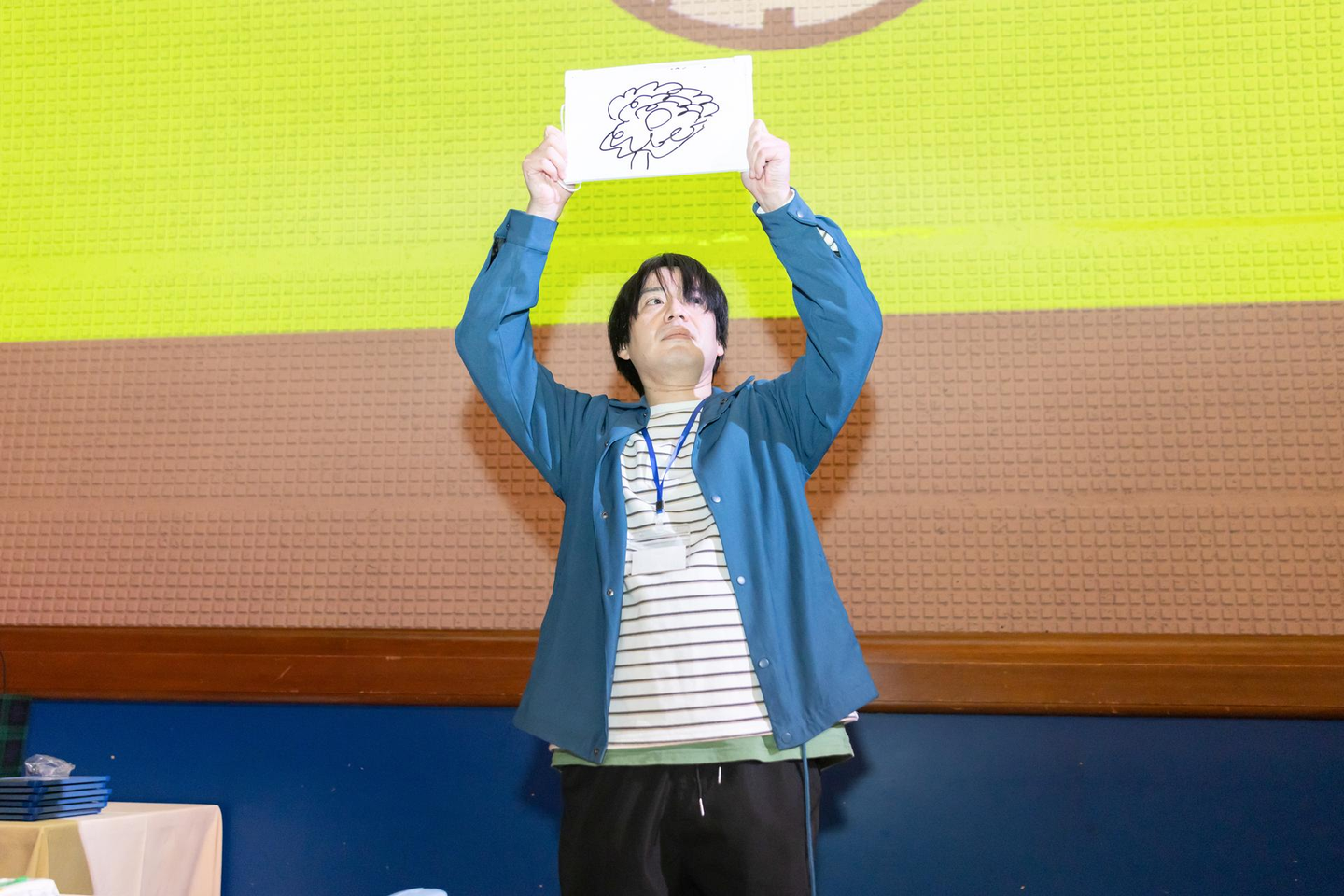 こちらは、部長さんにステージ上に上がっていただき、ジェスチャーをやったりイラストを描いていただき、その部署の社員には時間制限内にそれらをできるだけ多く当ててもらう、というゲームとなります。