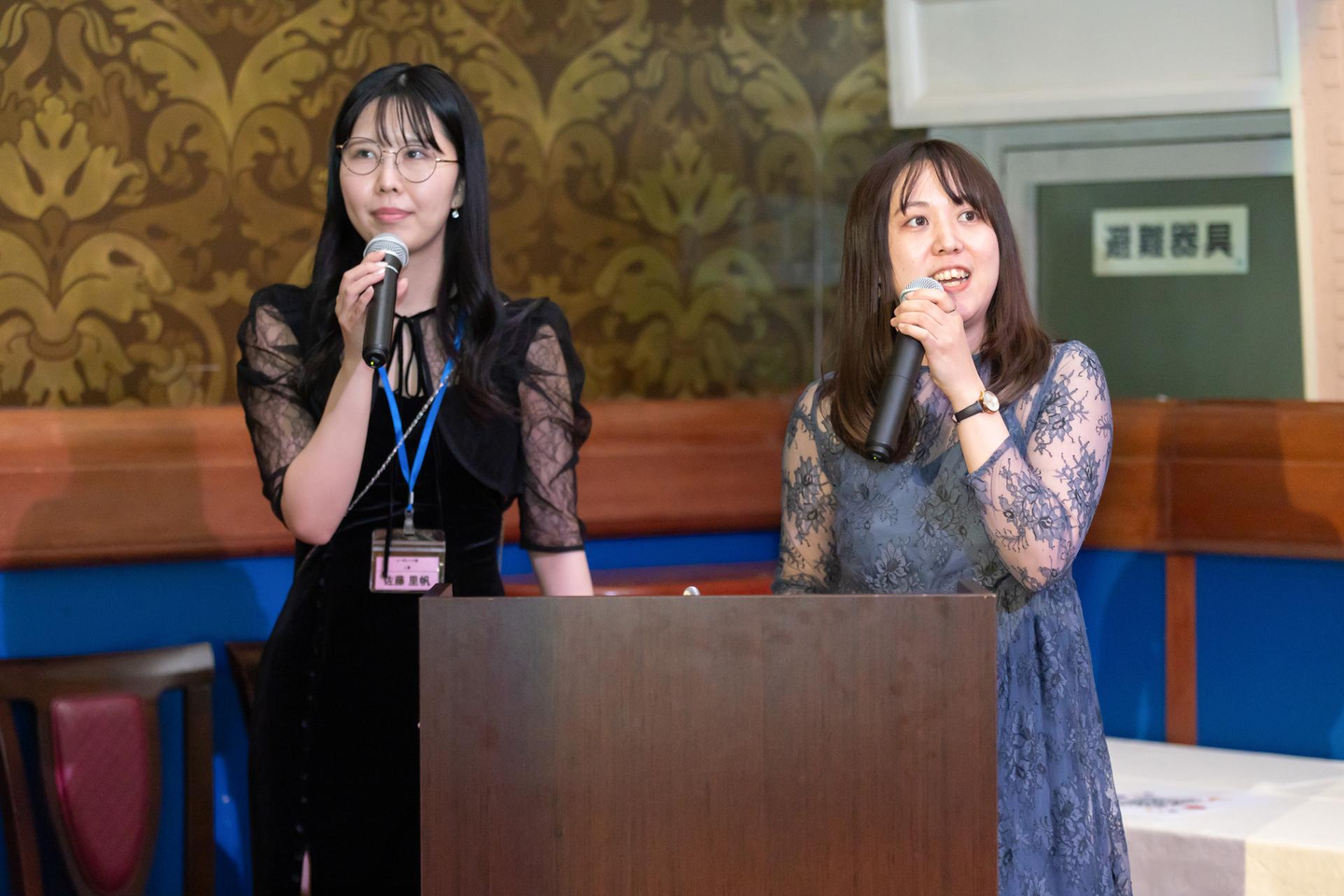 続いての余興、部署対抗戦は司会を青木さんと佐々木さんに戻して行いました。