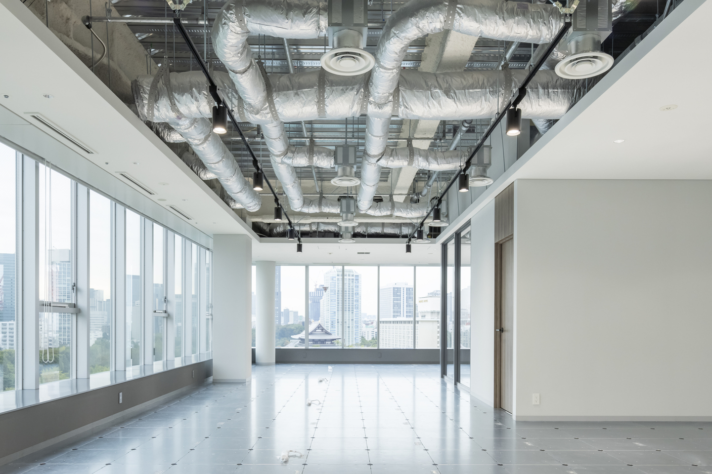 なんにもない、まっさらな執務スペース。ここにデスクやら打ち合わせスペースやらが設置されて、いい感じに仕上がっていく予定です。