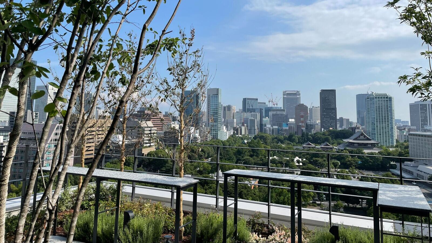 Wi-Fiも飛んでいて、休憩だけでなく作業や打ち合わせも可能な屋上庭園からの1枚。ここで仕事をしたら気分がよさそうです。別のアングルでは、東京タワーも見えるんだとか。