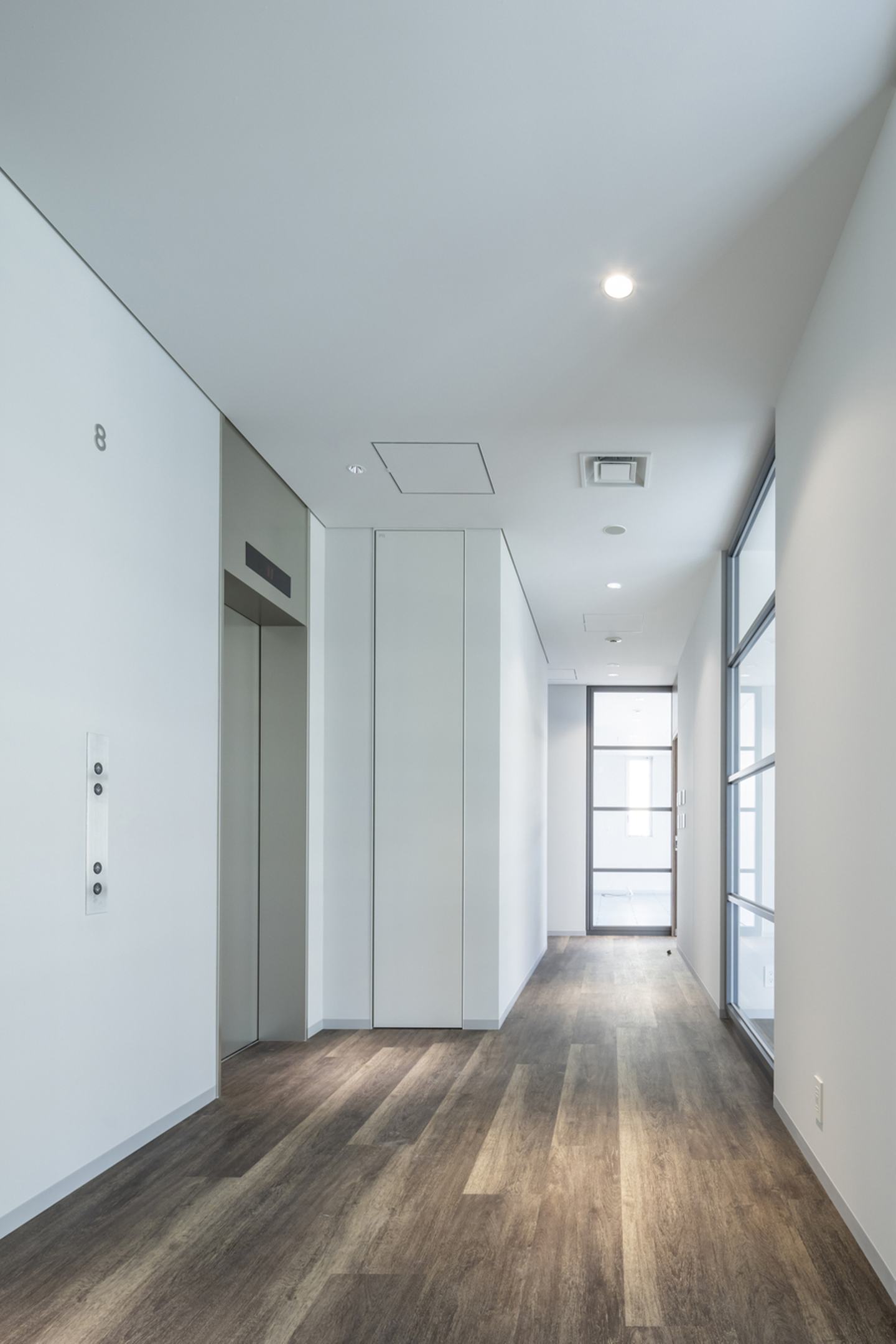 白を基調にした清潔感あるエントランスです。当然ですが、床も壁も新品です。