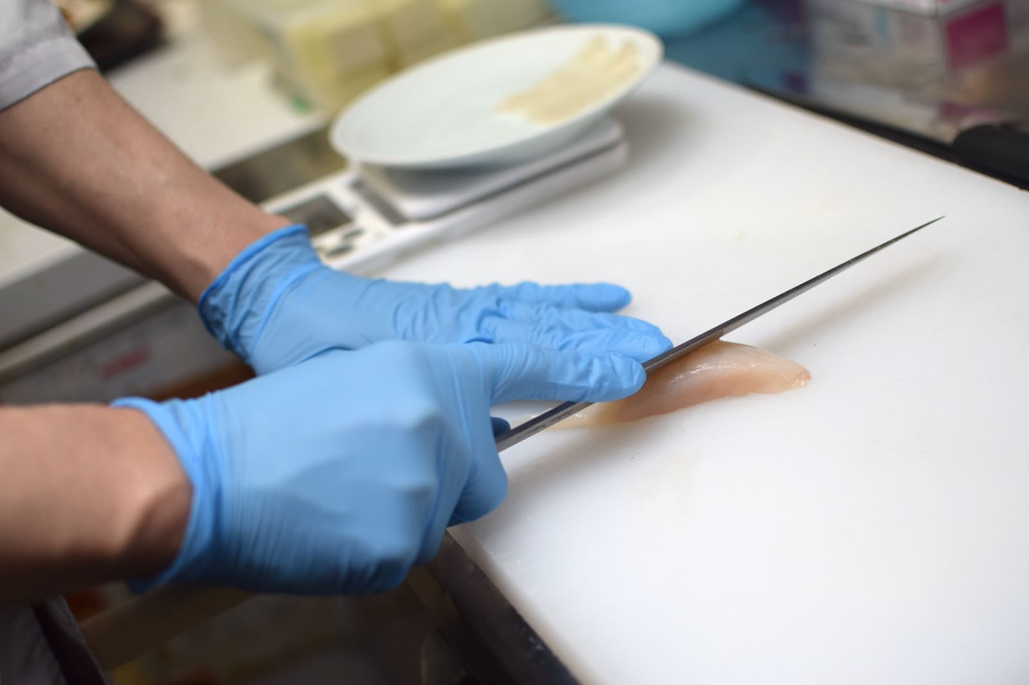 ふぐは高級食材であり、毒や内臓の処理などを含む解体には調理師免許が必要です。そのため一般的には、入社後すぐに新入社員がふぐに触れる機会など、滅多にありません。