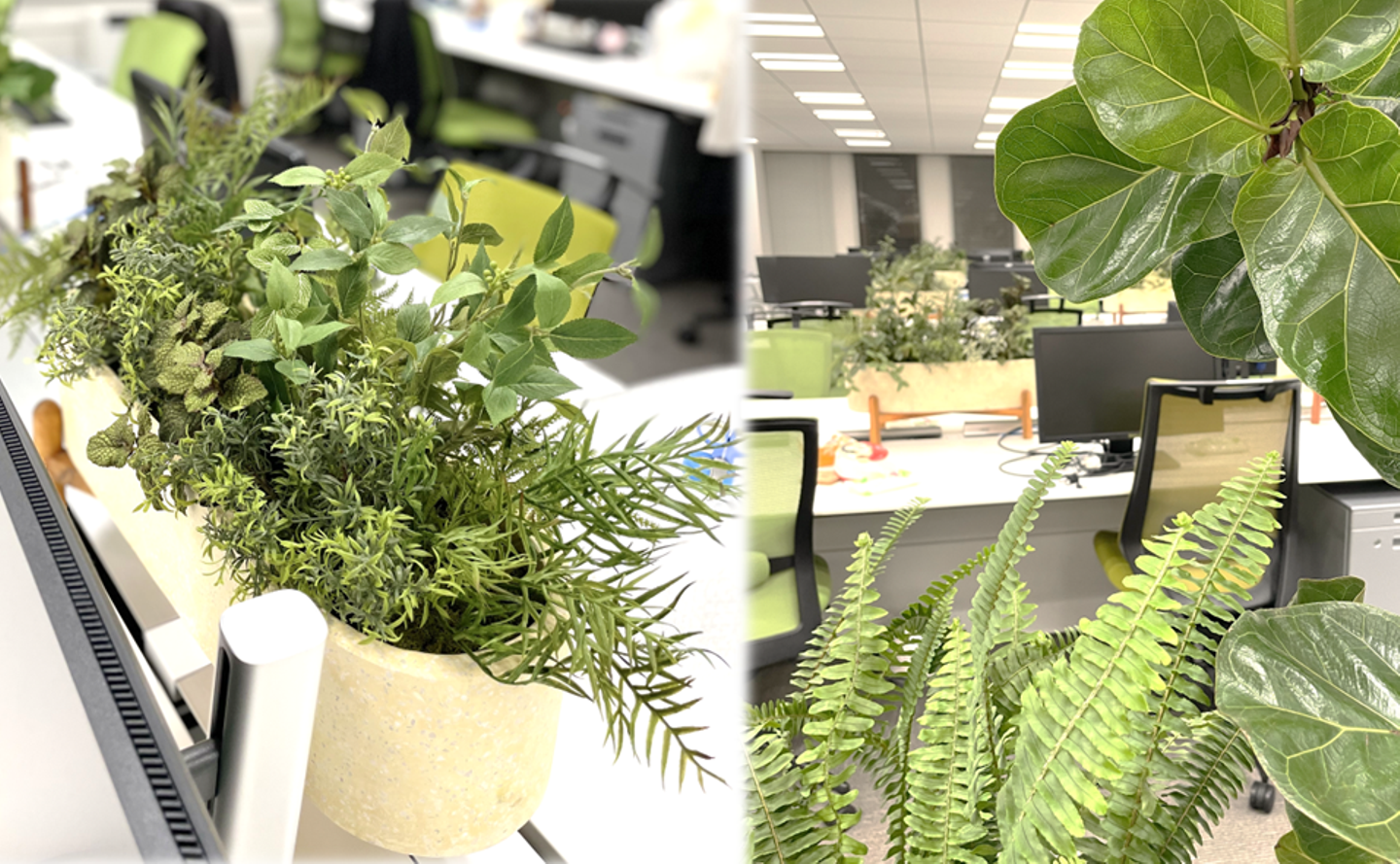 オフィス環境に緑を導入することで、従業員のストレスを軽減させ、