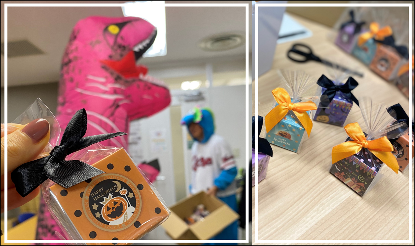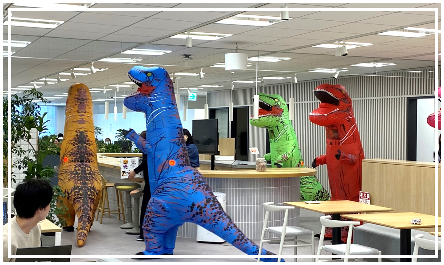 社長と経営層数人で着ぐるみを着て東阪事務所それぞれにお菓子を配ることになりました。