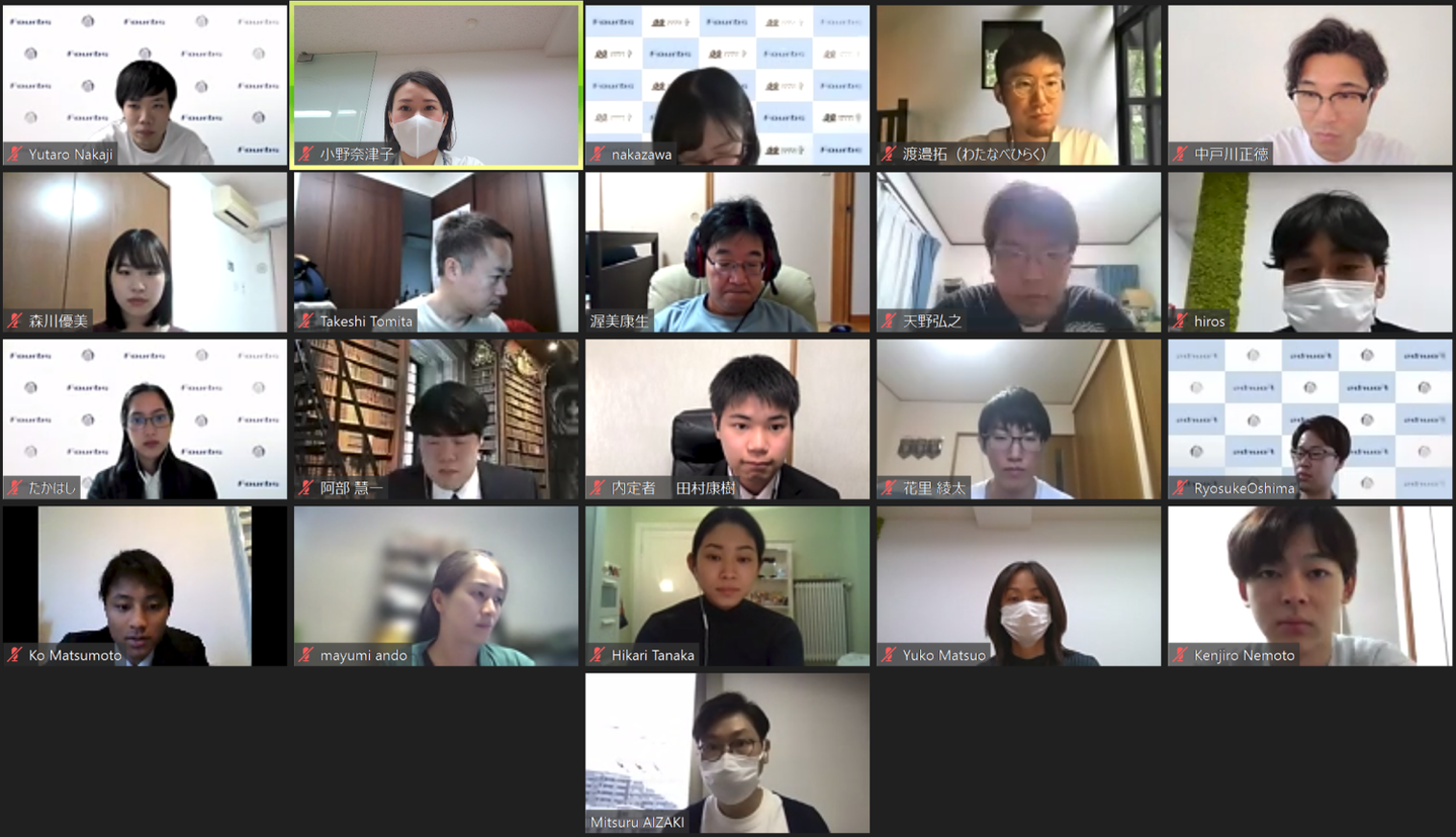 今年は、大阪(在住)やドイツ(留学中)の内定者の方がいたので、1都3県以外にいらっしゃらない方ともリモートで繋がりお話したりと、オンラインの良さを更に感じた内定式になりました。