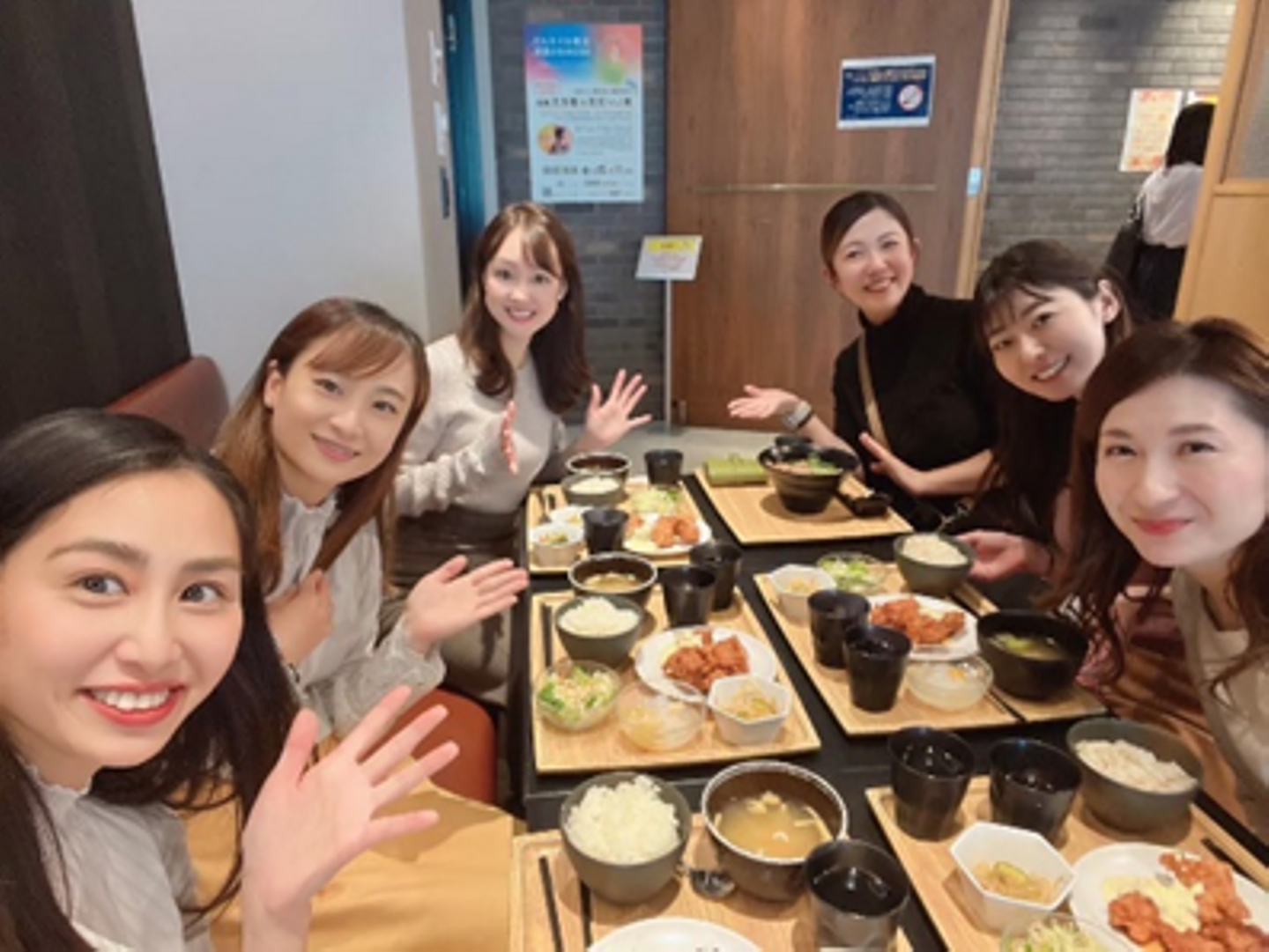 オフィスにいるメンバーと一緒に食事をする時もあります!トークナビで働くアナウンサーたちはみんな仲が良く、仕事の内容についてだけではなくプライベートについてもよく話しています。