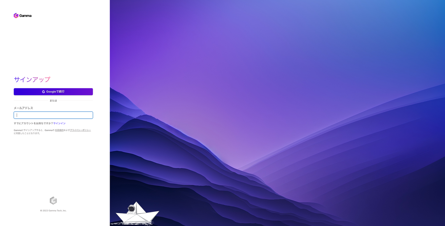 まずはGammaのアカウント作成と、初期設定を行います。