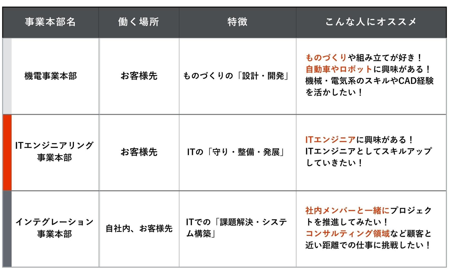 いきなり結論! 3つの事業本部は「こんな人」におすすめです