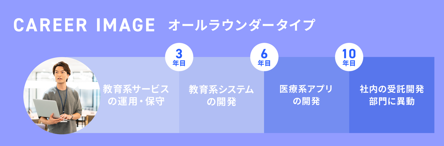 オールラウンダータイプとは、幅広い経験を積みながら成長していくゼネラリストタイプです。
