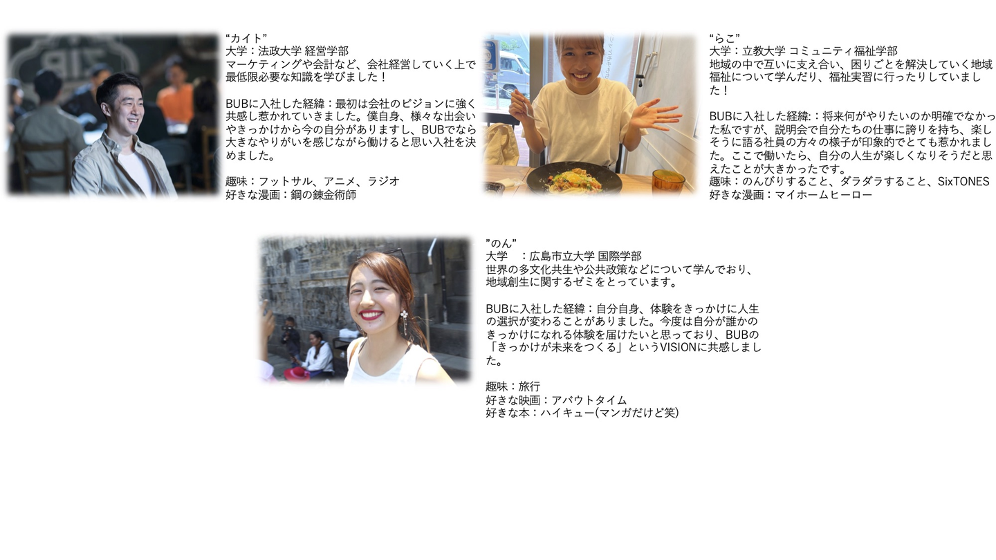 株式会社BUB 22卒内定者 ラコ&のん&カイト