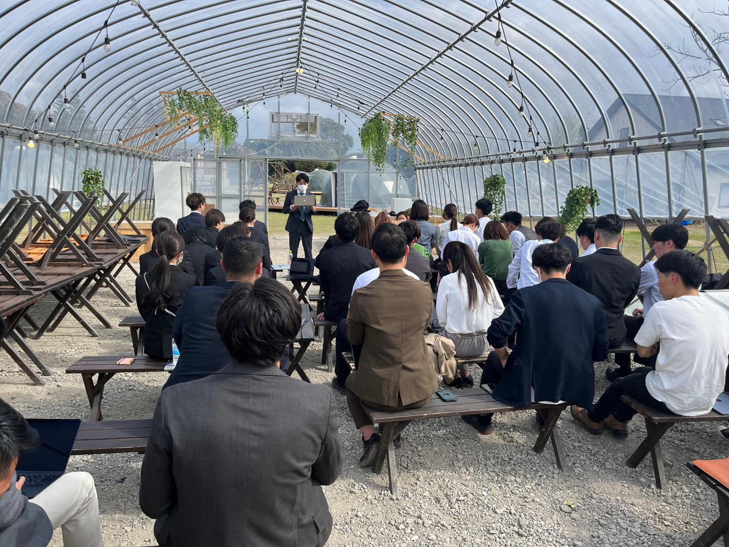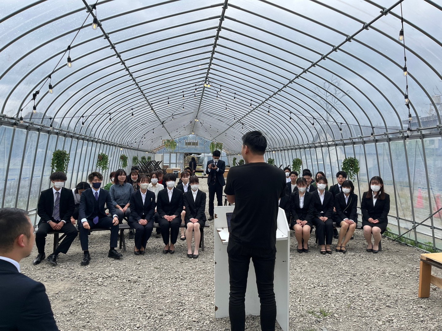 入社式は副代表清原による開会の言葉から始まり、各拠点の支配人・新入社員代表挨拶に続き、代表一戸による閉会の言葉で式を締めました。