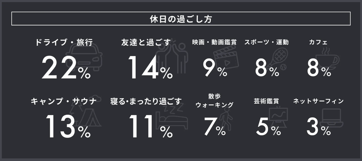 ーーありがとうございます。それでは今日のテーマである休日について聞かせてください。代表的な休日の過ごし方を教えてもらえますか?