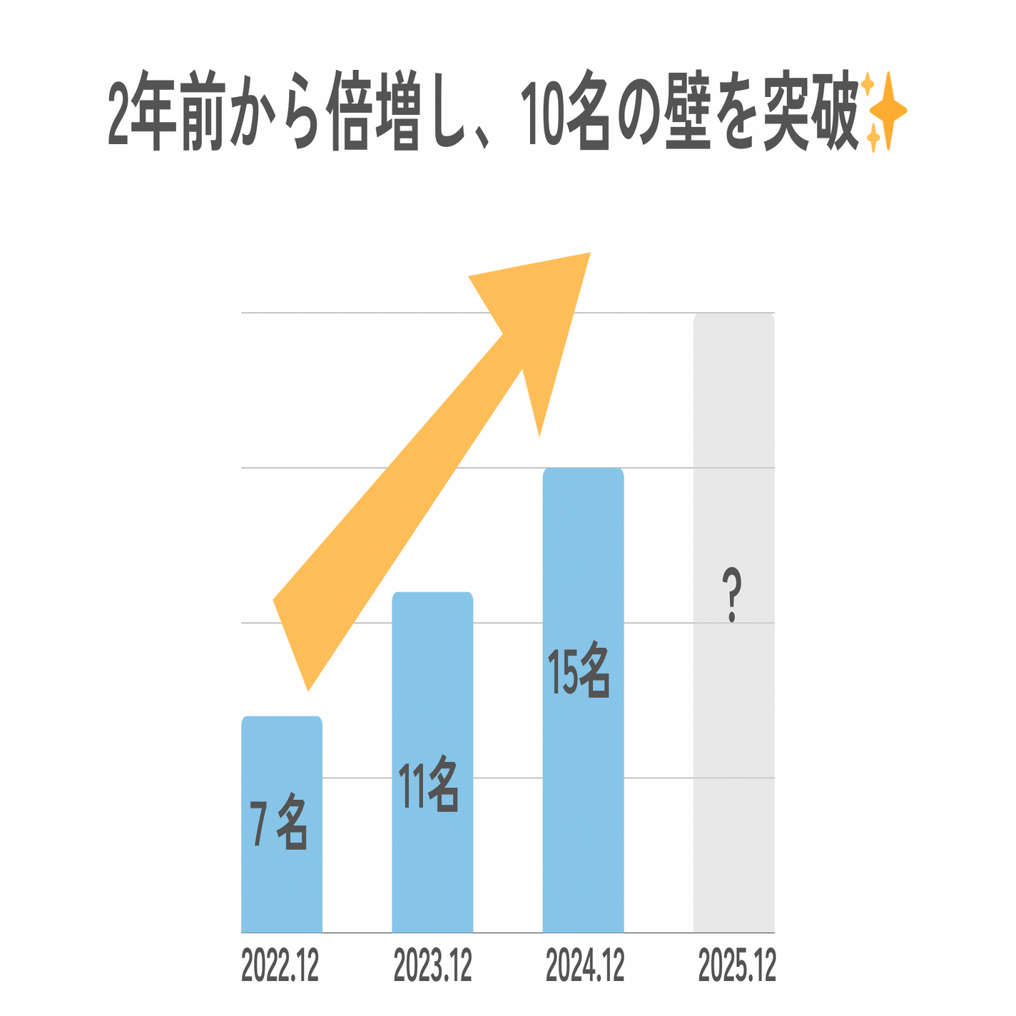 下記は、直近3年間における正社員数の推移です(代表は除く)。過去2年間超えられなかった「10人の壁」をようやく突き破り、社労士事務所としては一定の規模感を達成することができました。これには、採用を強化したことに加えて、既存メンバーが主体となって、新入社員の育成や定着に向けて継続的な改善の努力をしたことも大きく影響しています。