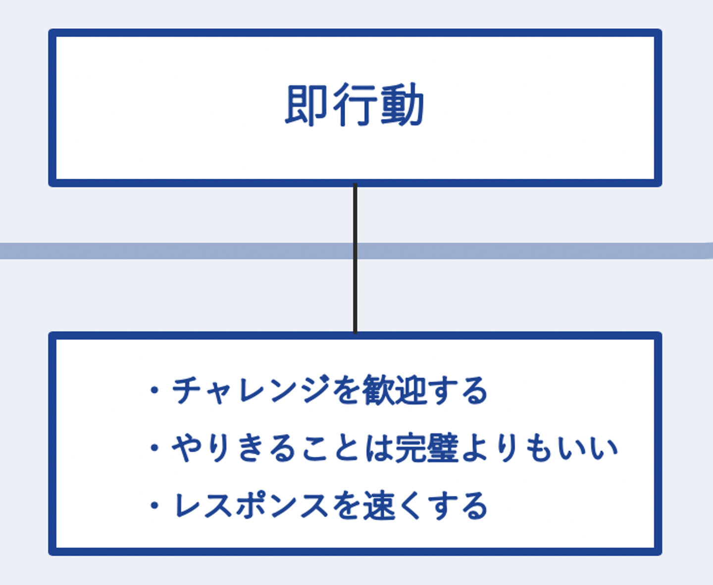 弊社のバリューを例にすると「急成長」という言葉の中には「現状維持は悪」という価値観があります。「急成長>問題はハックして解決する」という言葉の中には「気合いだけでなんとかするのは悪」という価値観が暗に働いています。「即行動」という言葉には「評論家になるな」という価値観が暗に働いています。