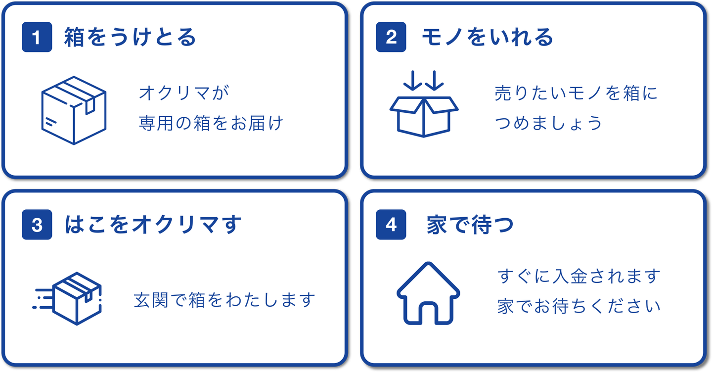 家にある余分なモノはオクリマでささっと売り、楽しみのために時間を取っていただけたらなと思っています。だからこそ、箱に詰めて送ってもらうだけという簡単なフローにしています。