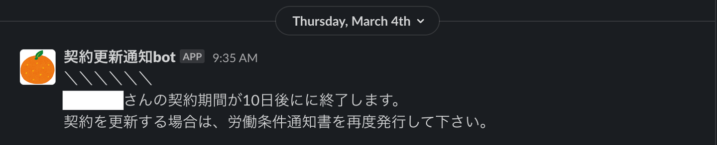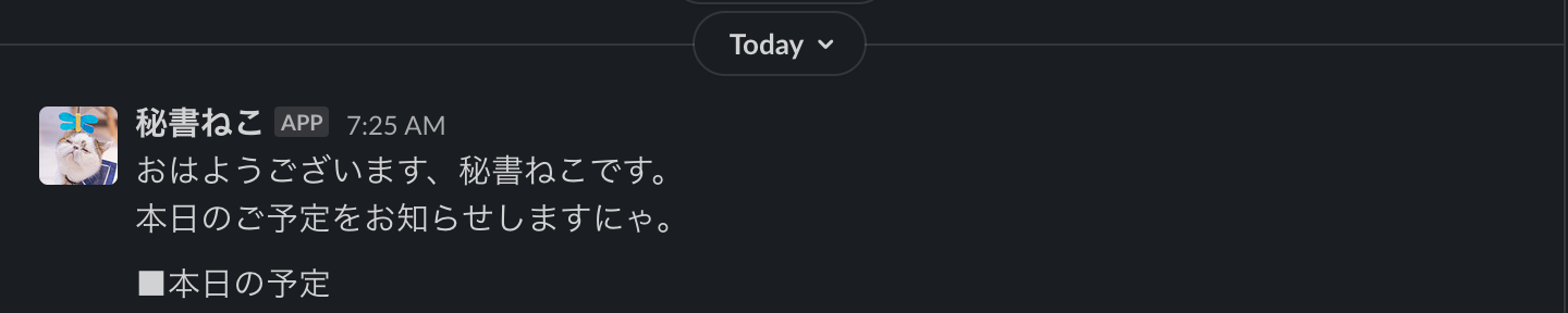 仕組み的にはカレンダーに入力した予定をそのまま社内slackに通知するシステムです。