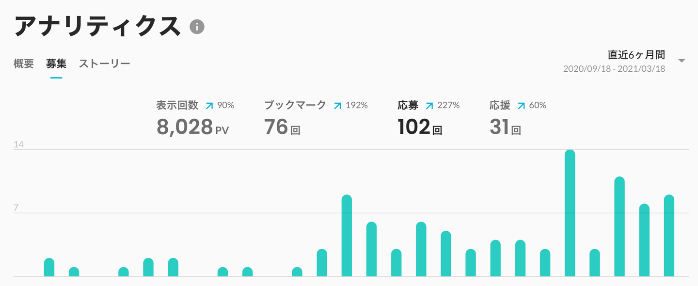 以下のアナリティクスは直近6ヶ月での当社への応募者数を表しています。
