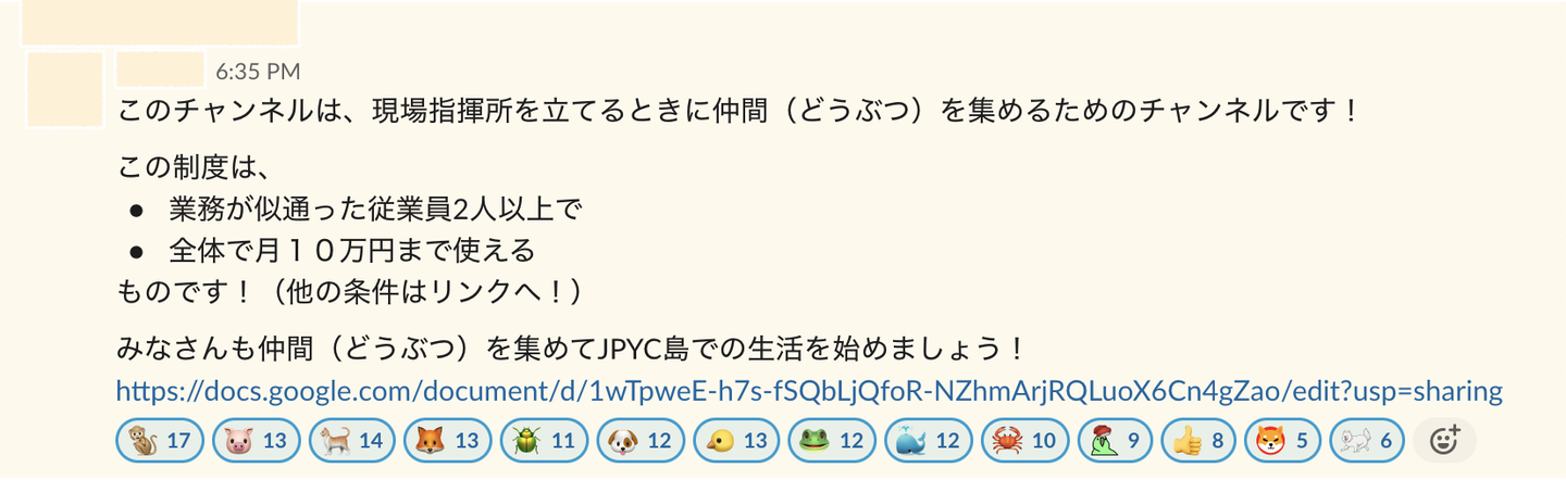 リモートワークが当たり前な今、一緒に働いているのにコミュニケーションがうまく取れなかったり、なかなか仲良くなれないなんてこと、ありませんか?そんな時に使える制度が「あつまれJPYCの森」です。近くのシェアオフィスやカフェでの利用料金を受け取ることができるんです。この制度のおかげで、一人で悩んだり、連携が取れずに作業が滞ることはありません!
