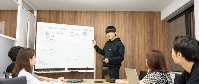 経営陣は25歳、平均年齢は24歳と若手が非常に多い企業です。様々な経歴の人が集まっており、年齢や経験の差を気にすることなく、フラットなコミュニケーションをとれる環境となっています。客観的な視点を取り入れるため、何か意見があれば年齢や立場に関係なく意見を言える環境にあります。少人数の組織だからこそ自分の意見がダイレクトに反映されやすく、自身のやりたいことを実現しやすくなっています。
