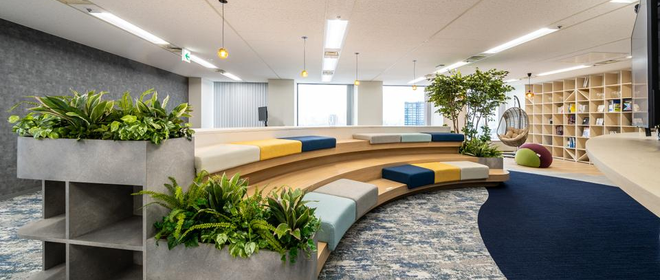 オフィスにはフリーアドレスの席を設け、上長以下メンバーがいつでも声をかけあえるような環境づくりをしています。