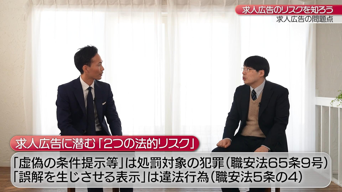慶應技塾大学で教鞭を取り、AI・人事労務法務のスペシャリストとして活躍する松尾高幸弁護士は、求人広告の法的リスクを次の2つに整理しています。