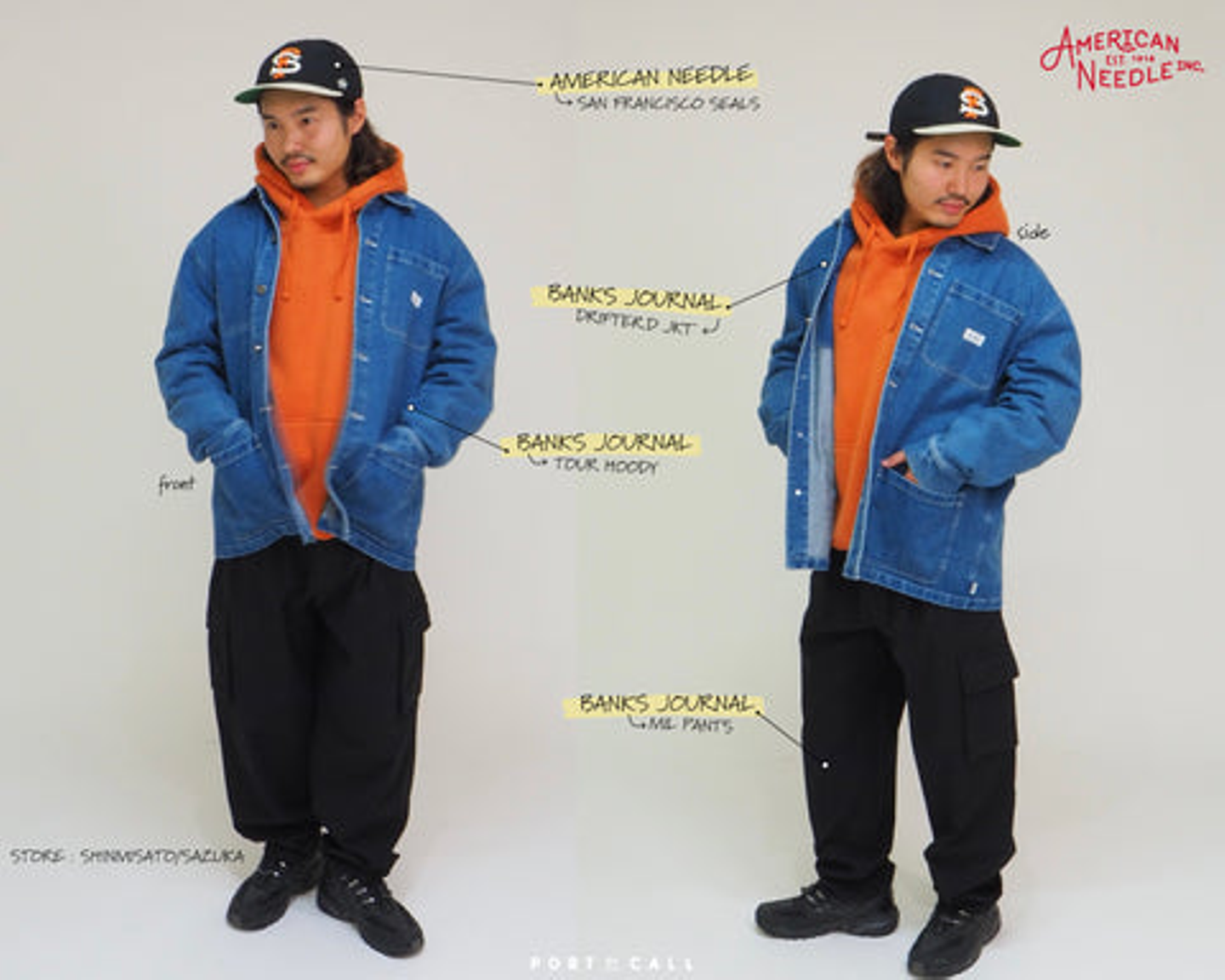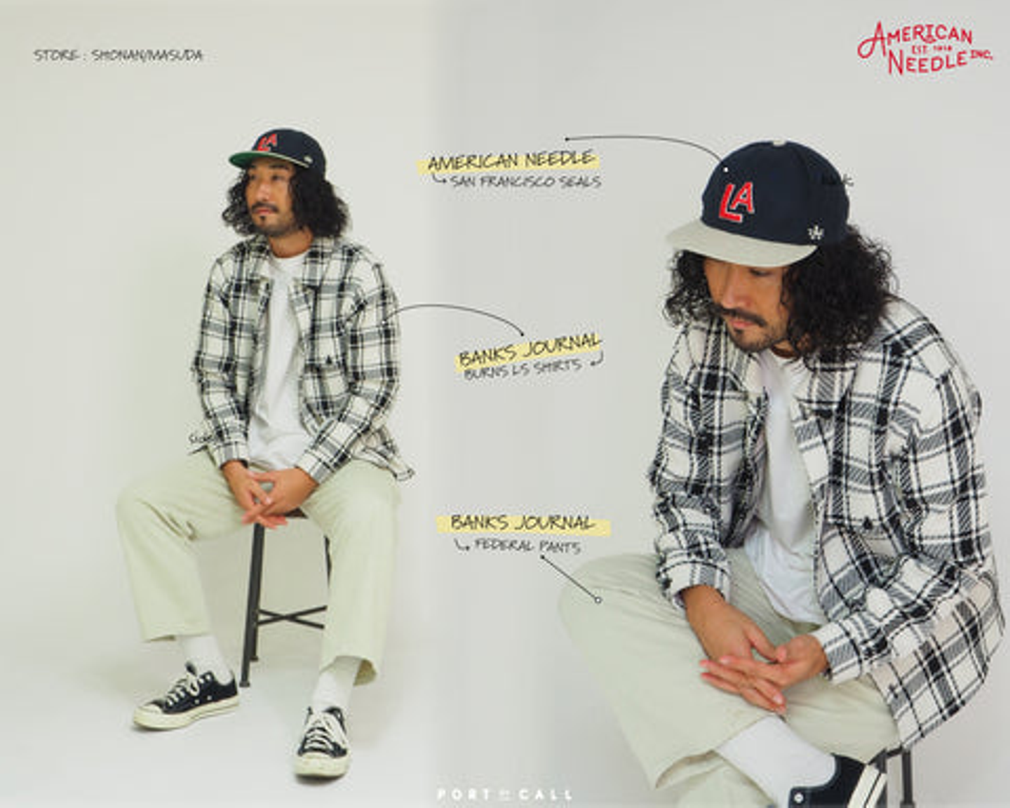 【AMERICAN NEEDLE - LINE OUT series】の定番ロゴキャップを使い、オススメのコーディネートをご紹介。