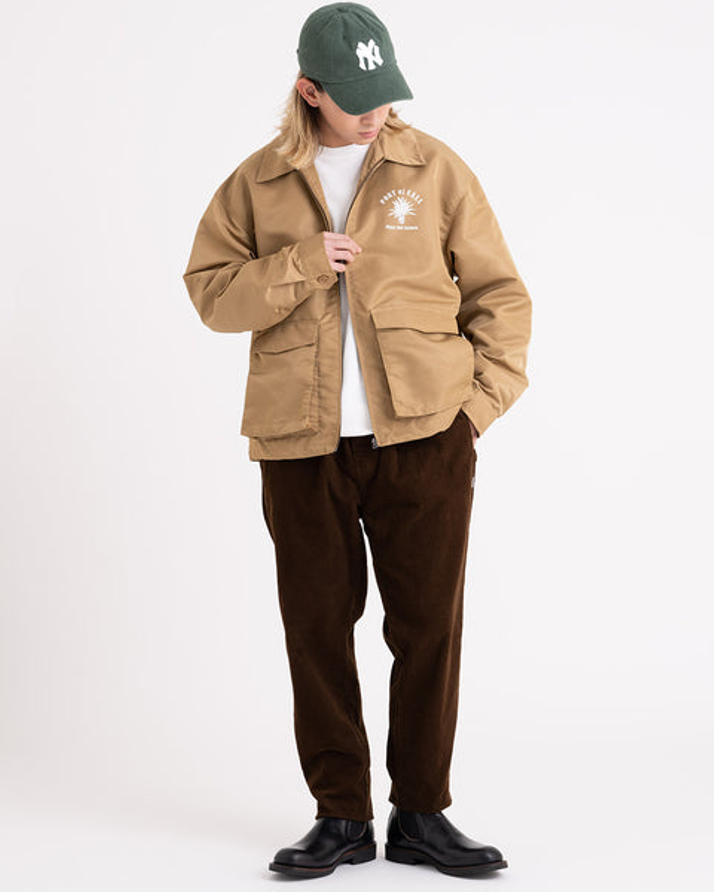 NIGO 氏のブランド「HUMANMADE®」や「A Bathing Ape®」のグラフ ィックを手がける、グラフィックアーティストの OSUSI(オスシ)。そんな OSUSIさんと作る今回の商品は、メキシコの 港町プラヤ・デル・カルメンにある地元の人達で溢れる架空の BAR「PORT of CALL」。その店のスタッフ達がユニフォームと して着用し、レジ横で販売してるスーベニア的なアイテムをイメージ。そんな現地の空気感を OSUSI さんに表現してもらいまし た。彼の作る世界観と、各国の港町をショップコンセプトとする、PORT of CALL ならではのコラボレーションです。