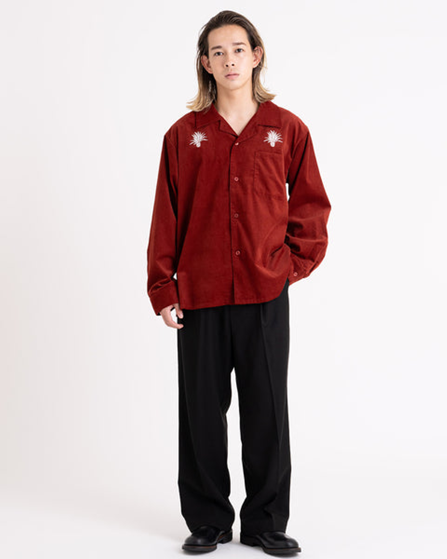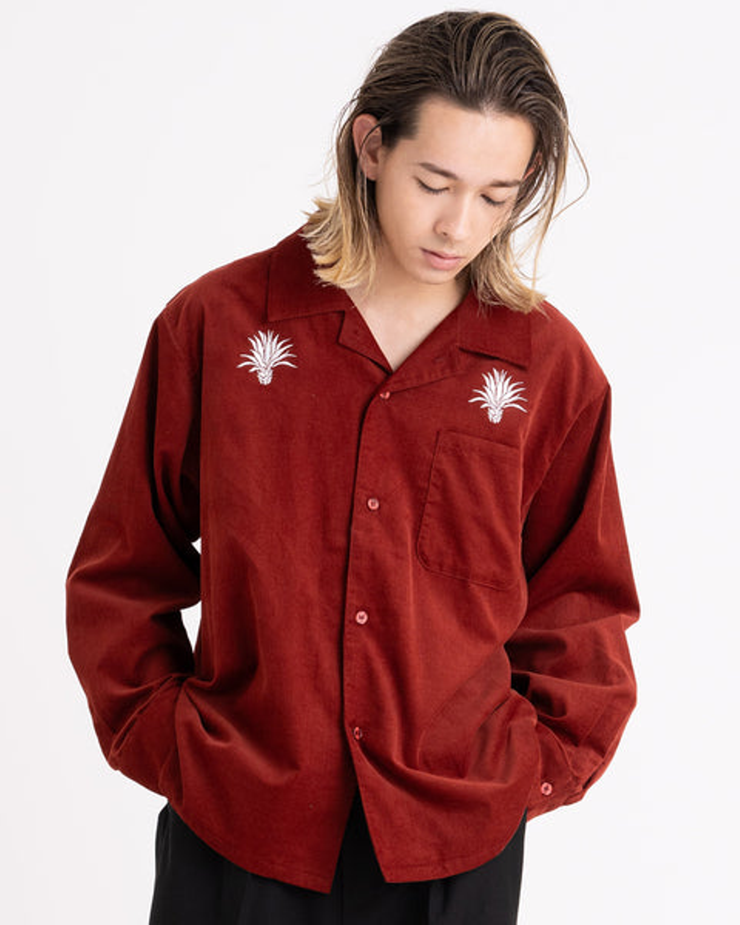 そんな OSUSI さんと作る今回の商品は、メキシコの 港町プラヤ・デル・カルメンにある地元の人達で溢れる架空の BAR「PORT of CALL」。その店のスタッフ達がユニフォームと して着用し、レジ横で販売してるスーベニア的なアイテムをイメージ。そんな現地の空気感を OSUSI さんに表現してもらいまし た。彼の作る世界観と、各国の港町をショップコンセプトとする、PORT of CALL ならではのコラボレーションです。