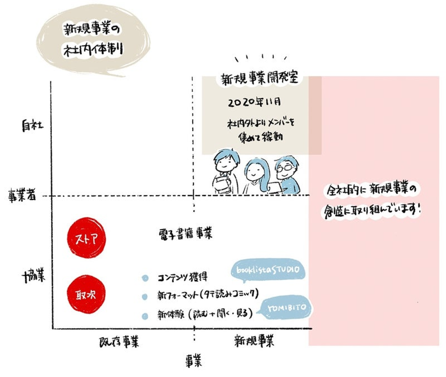 2023年現在では、新しいコミックアプリの開発、音声付きの電子書籍コンテンツの制作や、オリジナルのマンガコンテンツの出版などの新規事業が動いています。