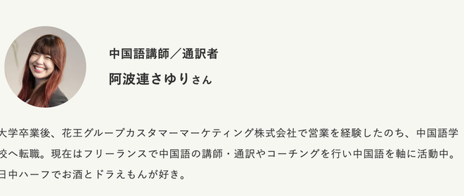 中国語を教えるお仕事なのでプライベートと両立させやすいです。