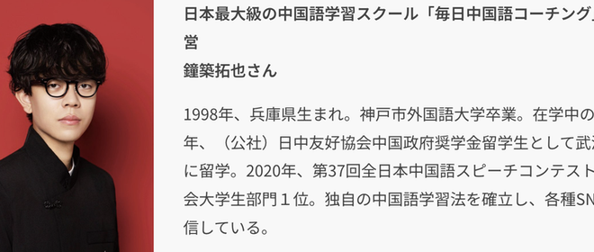 私たち毎日中国語は中国語を習得することによって 人生の可能性が拡がると考えています。 中国語を学びたいのに「自信がない」「機会がない」「勉強法が分からない」 が原因で挫折してしまい自分の新しい可能性を 実現出来ないままになってしまうことは非常に勿体無いです。 毎日中国語は私たちのサービスを通じて中国語という強力なスキルを得て 夢や目標を叶えて笑顔になっていただきたいと考えております。 中国語を教えるだけにとどまらず その先の目標を叶えるための後押しをしたい そんな想いでサービスを提供しております。