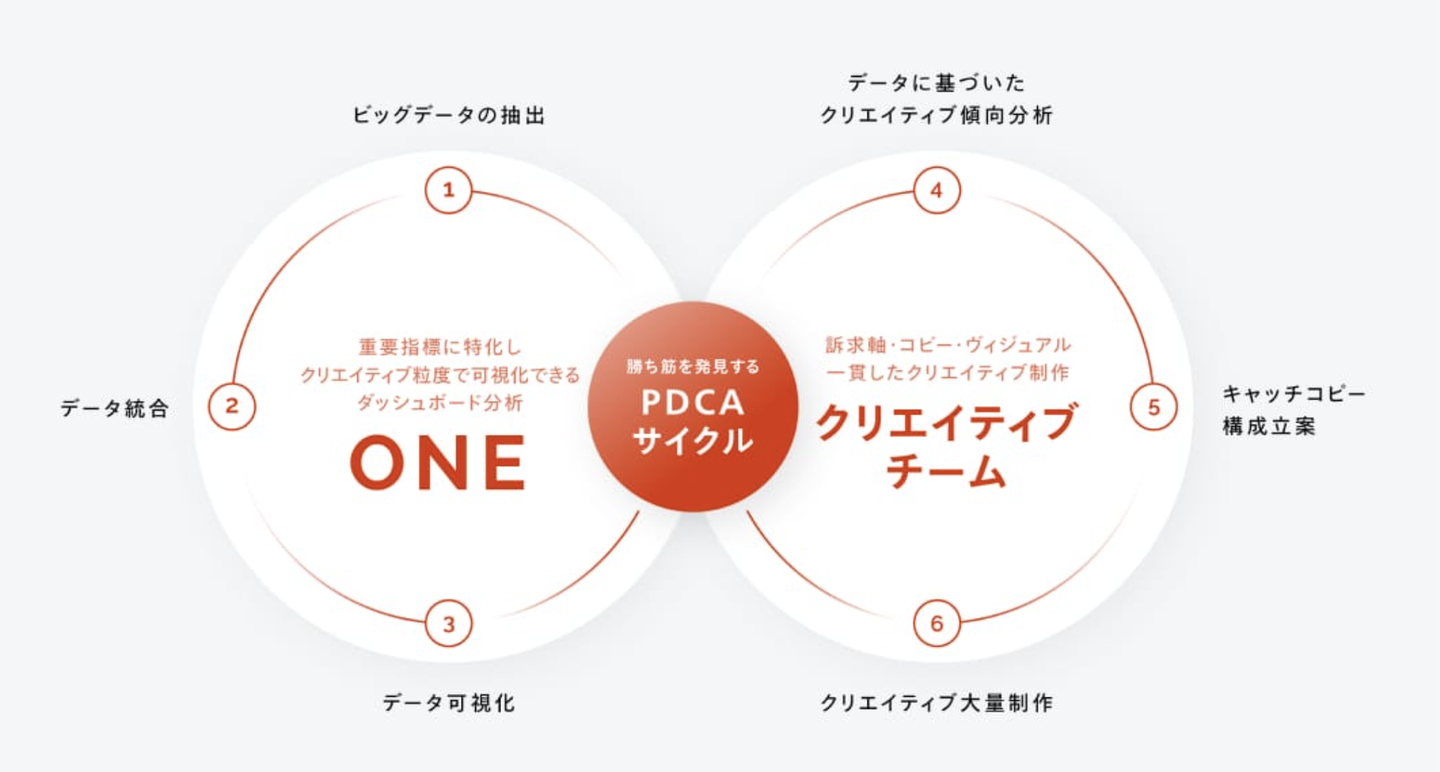 また、自社が提供する運用の範囲だけでなく、データやお客様からのヒアリングを基に「ONE」以外のツールもご紹介させていただいたり、お客様側で制作されたコンテンツへのアドバイス・提案など、広告よりももっと広い視点で「事業そのものの意思決定」を支援させていただいています!