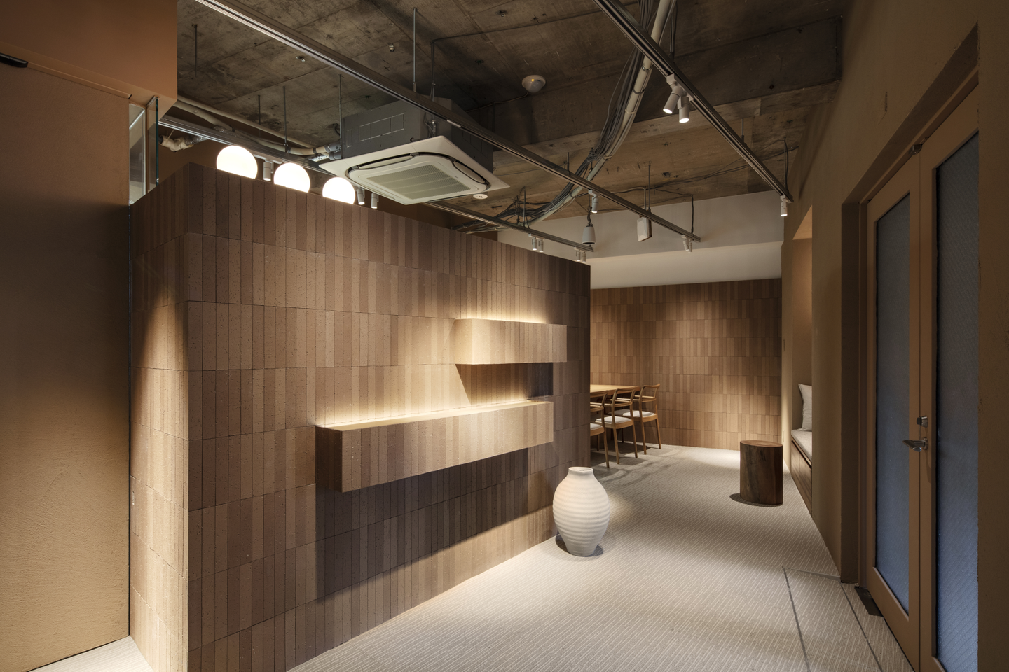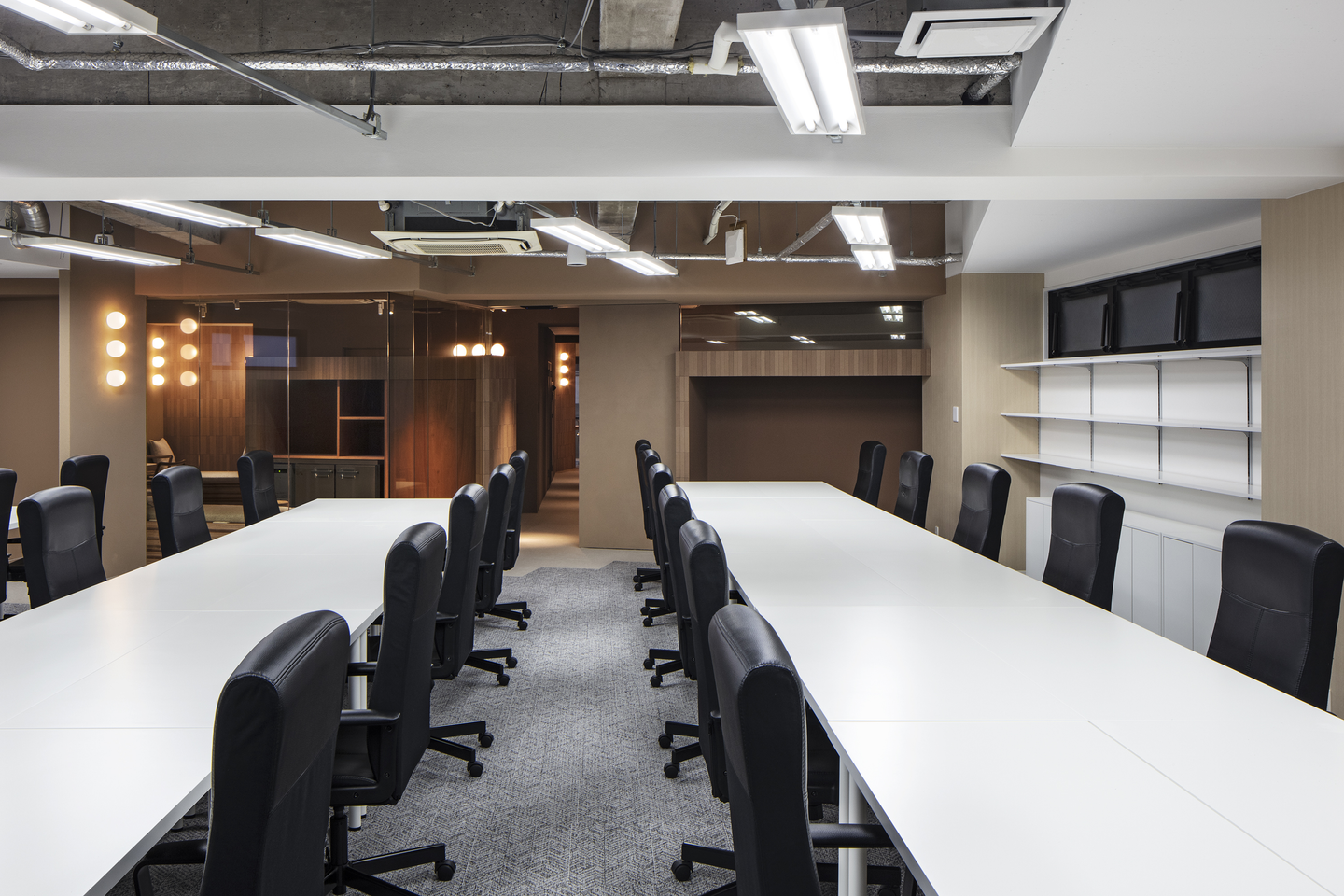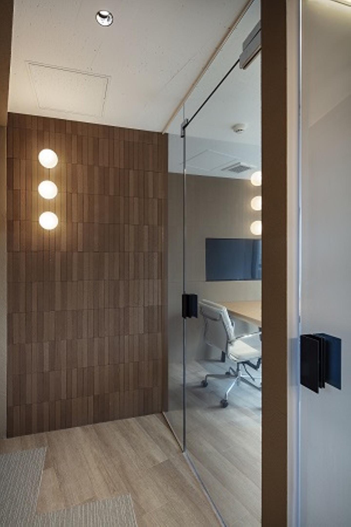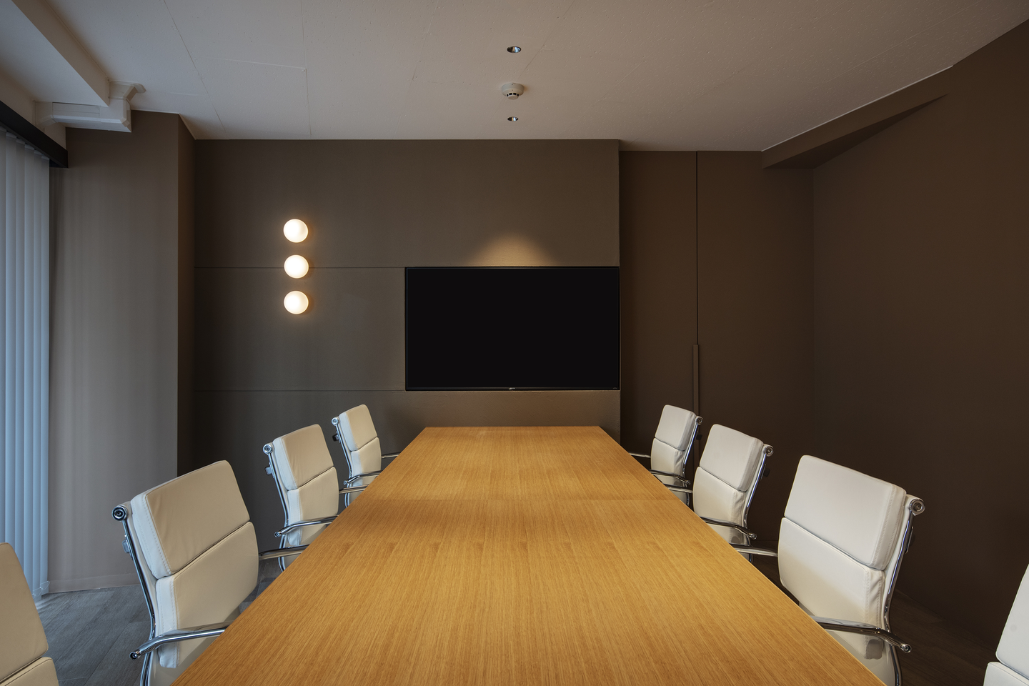 通路を抜けた先にあるこの会議室は、「モダンさ」と「温かみ」を感じられるような空間となっています。