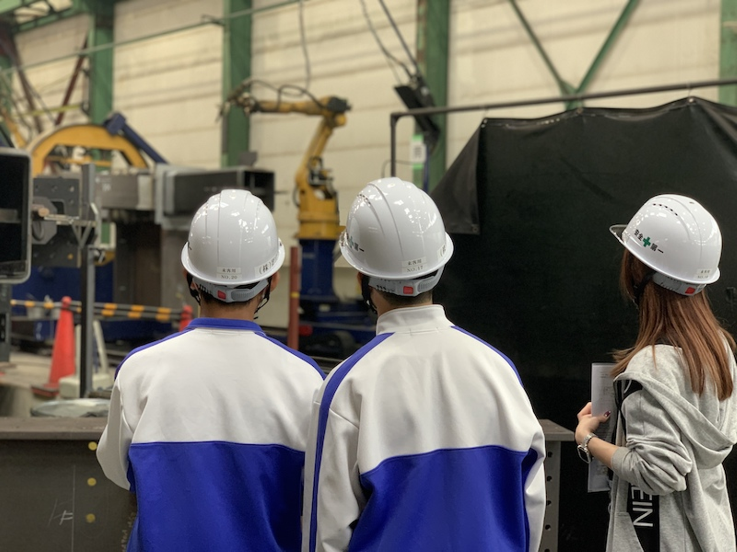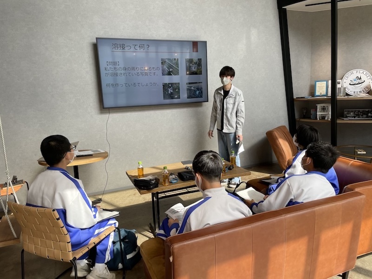 まずは、この影山鉄工所がどんな会社なのか、どんなことに取り組んでいる会社なのかを知っていただきました。さらに、弊社の事業となる鉄骨や溶接についても学んでいただくことにより、より理解を深めていただきました。