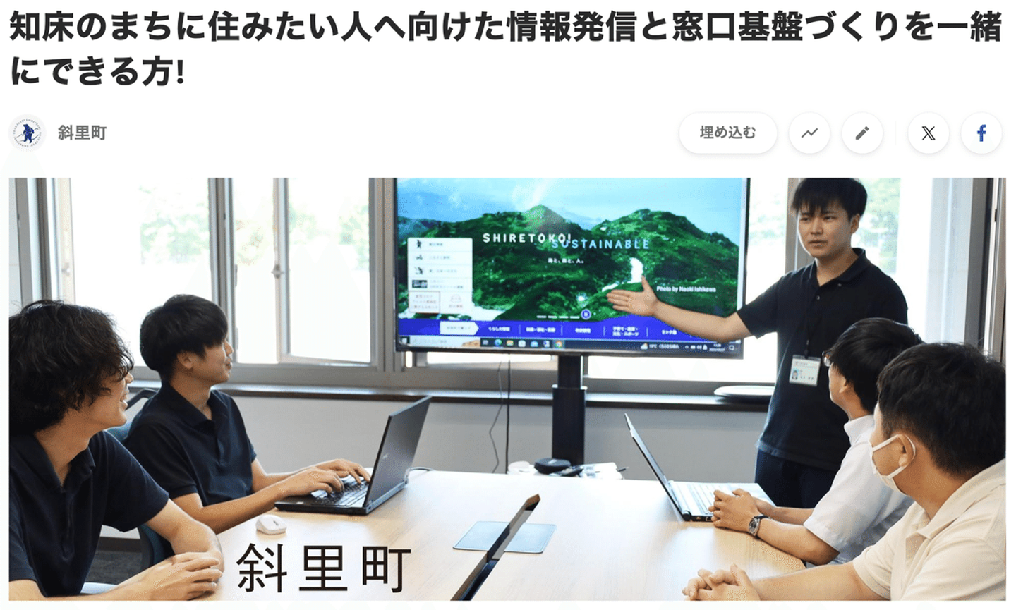 これまでもなんとなく定期的にみていたスタートアップの求人情報が多く載っている「Wantedly」を開き、勤務地が「北海道」の求人をみると「斜里町」の求人を発見。