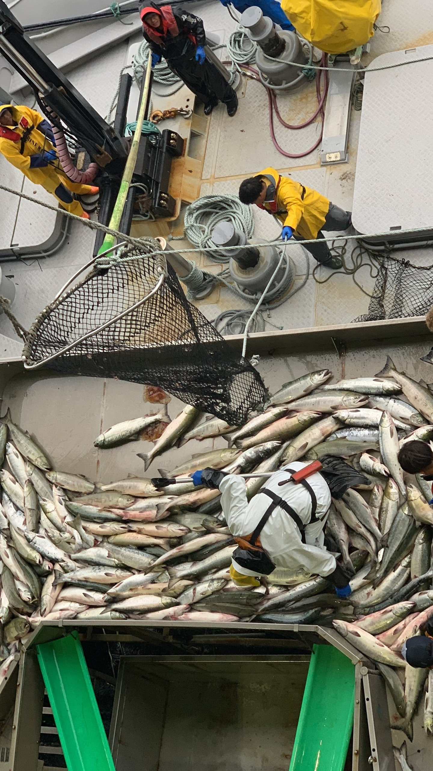 鮭の水揚げの様子を見に行ったり 1船 20t以上の漁獲/1日