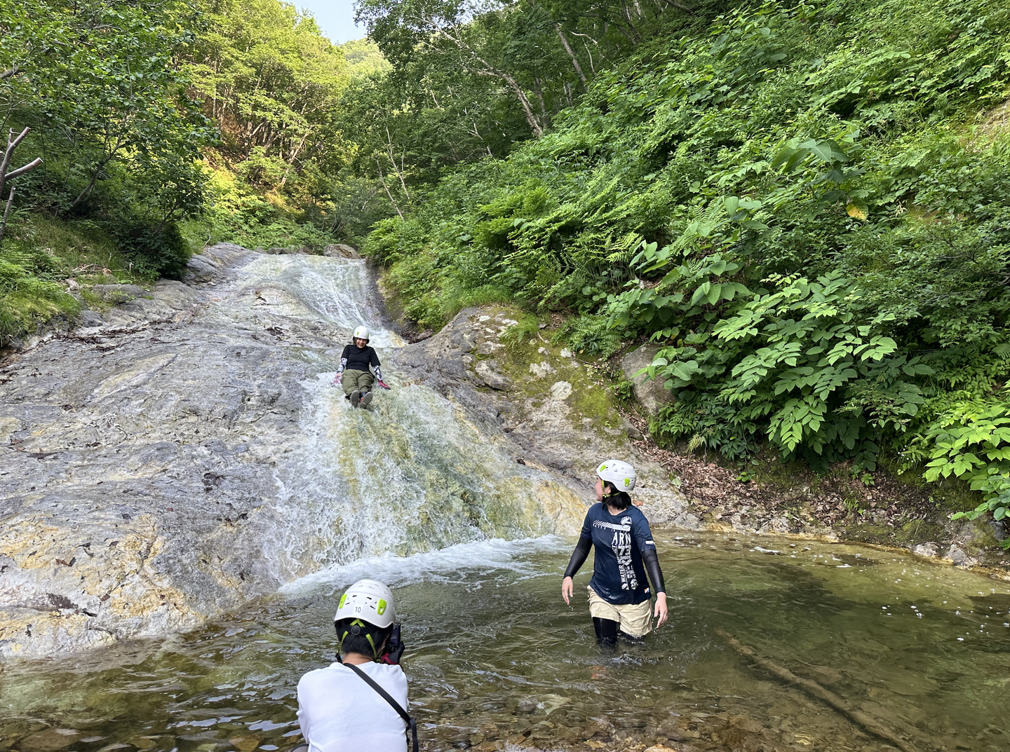 商業観光課に引率してもらい カムイワッカの滝 へ登り、斜里町の魅力を発見したり