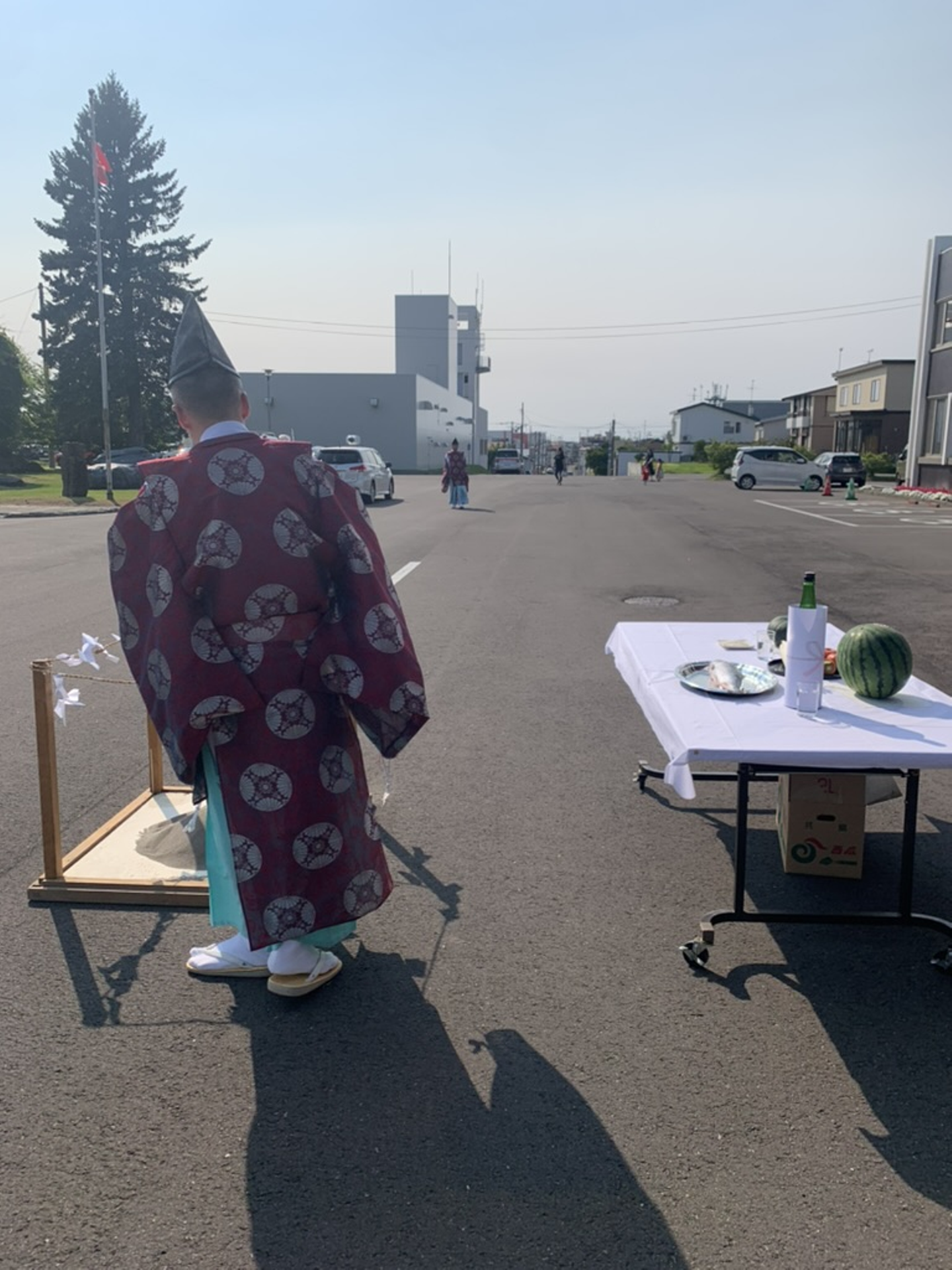 斜里神社例大祭で、役場へ御神輿を担いで来てくださったみなさんを出迎えたり