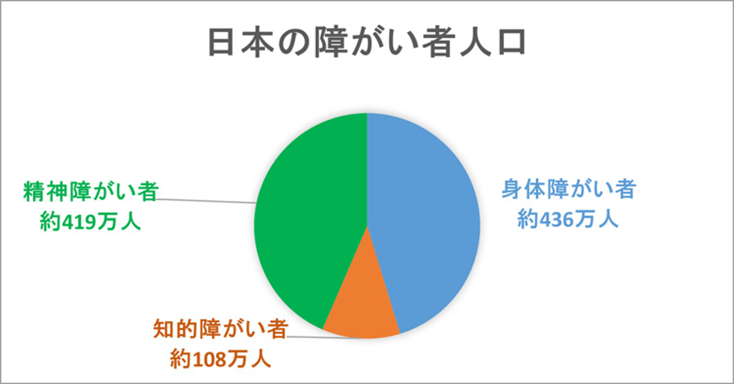 知的障害がある人、精神障害がある人も含め、厚生労働省の調査によると、日本にはおよそ963万人もの人が何らかの障害を持って暮らしています。全人口の約7.6パーセント、およそ13人に1人の割合です。