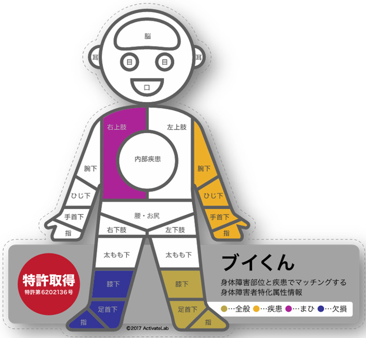 増本さんが開発したマッチングエンジン「ブイくん」は、身体障害の可視化を実現した(アクティベートラボ提供)