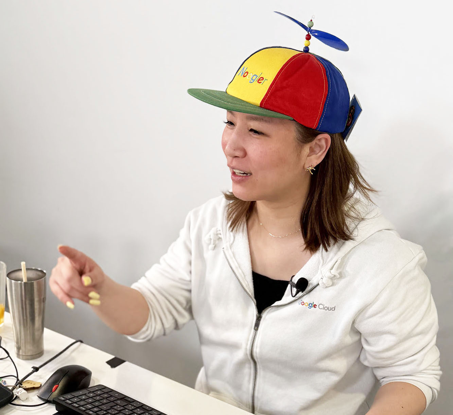 トレーナーのさとあゆさんはプロペラの付いた Google キャップを被って登場。参加者からは「帽子に朝から元気もらいました!」「昨日理解できなかったので構えていましたが、リラックスできました」といったコメントも寄せられ、場の雰囲気が和らぐ場面も。