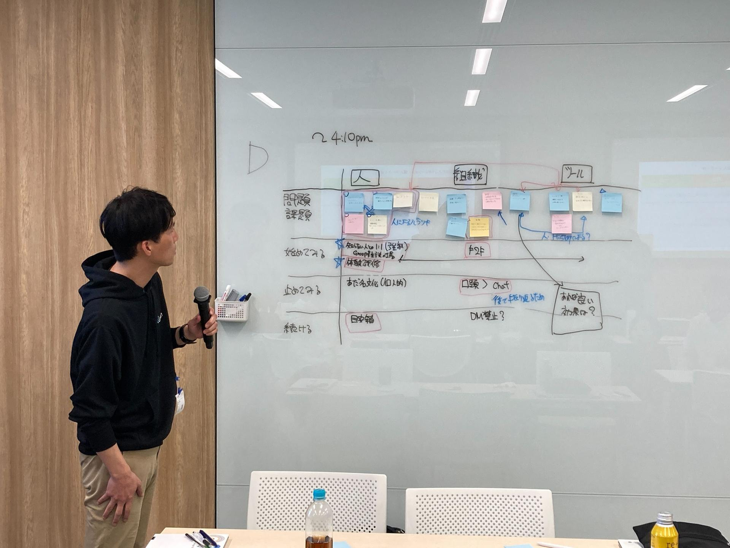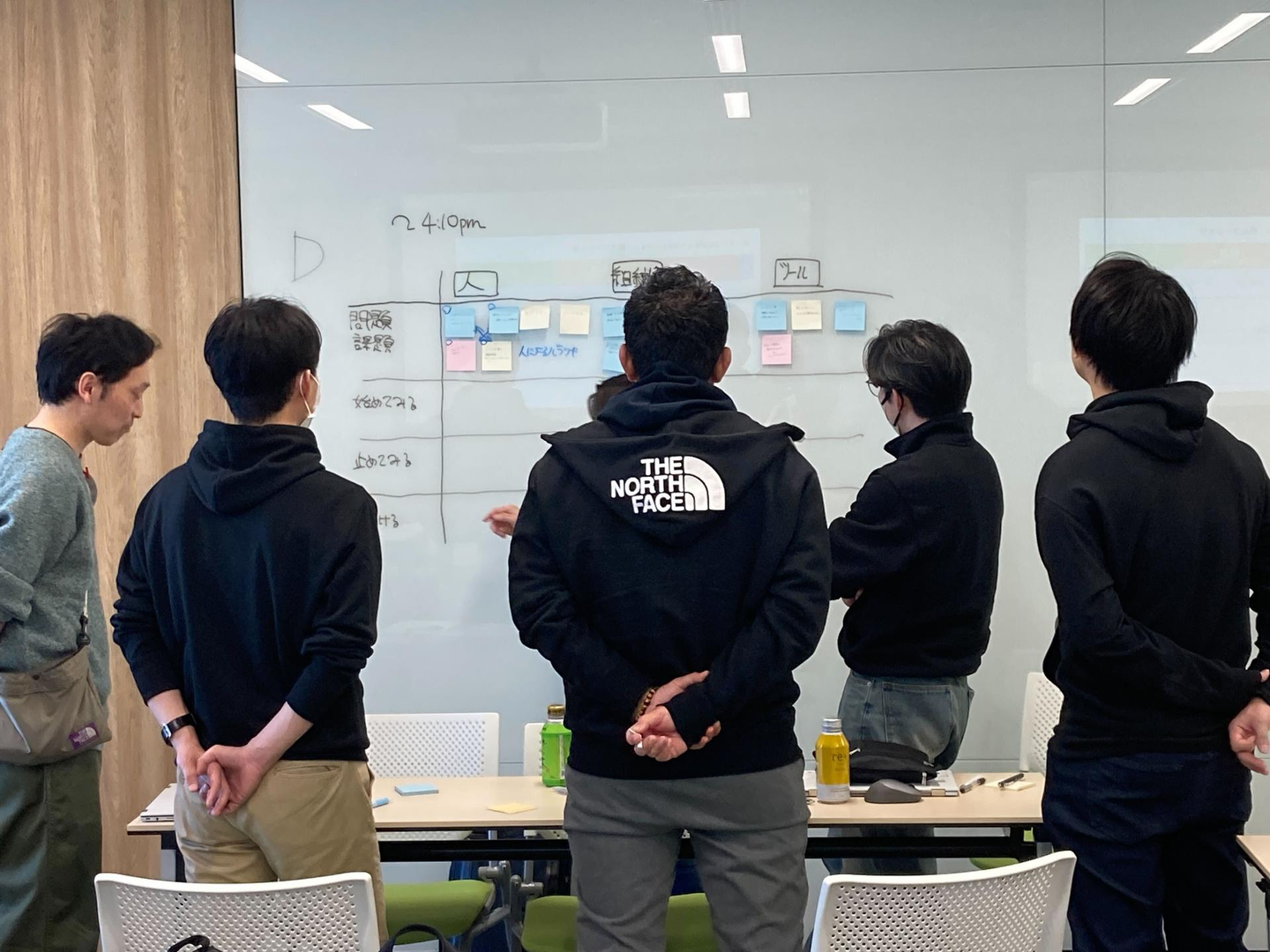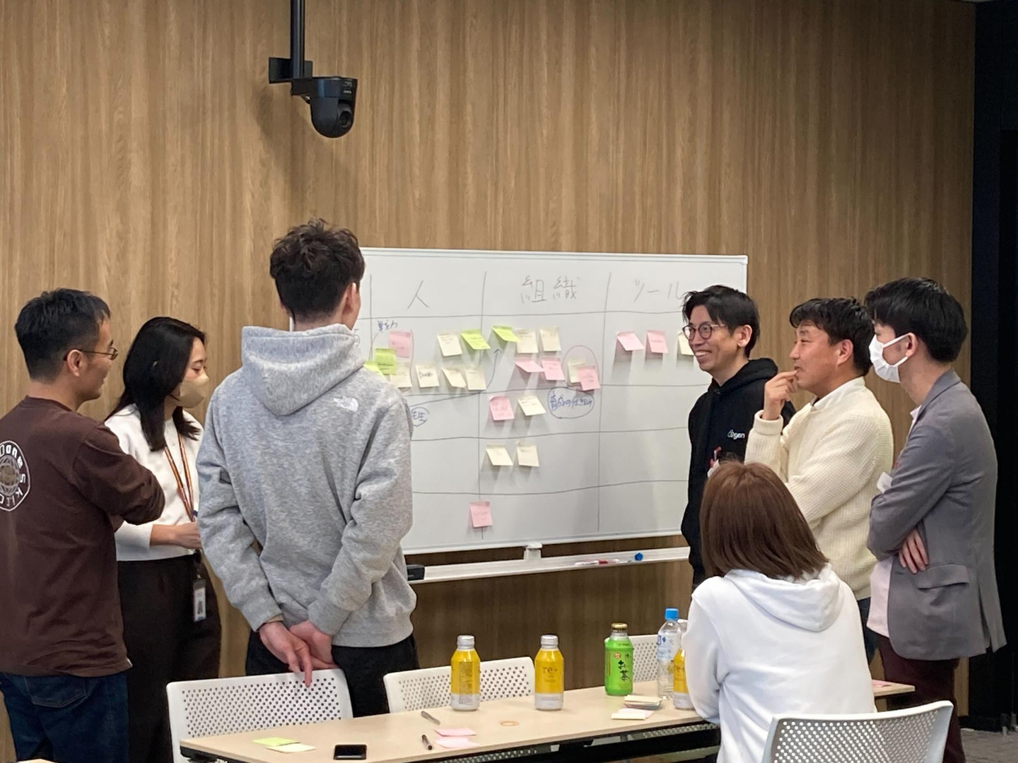 多様な人材同士で会話することで新しい発想が生まれるという Google のカルチャーをしっかり取り入れ、役職、部署がまんべんなく混ざるように 4 グループに分かれました。