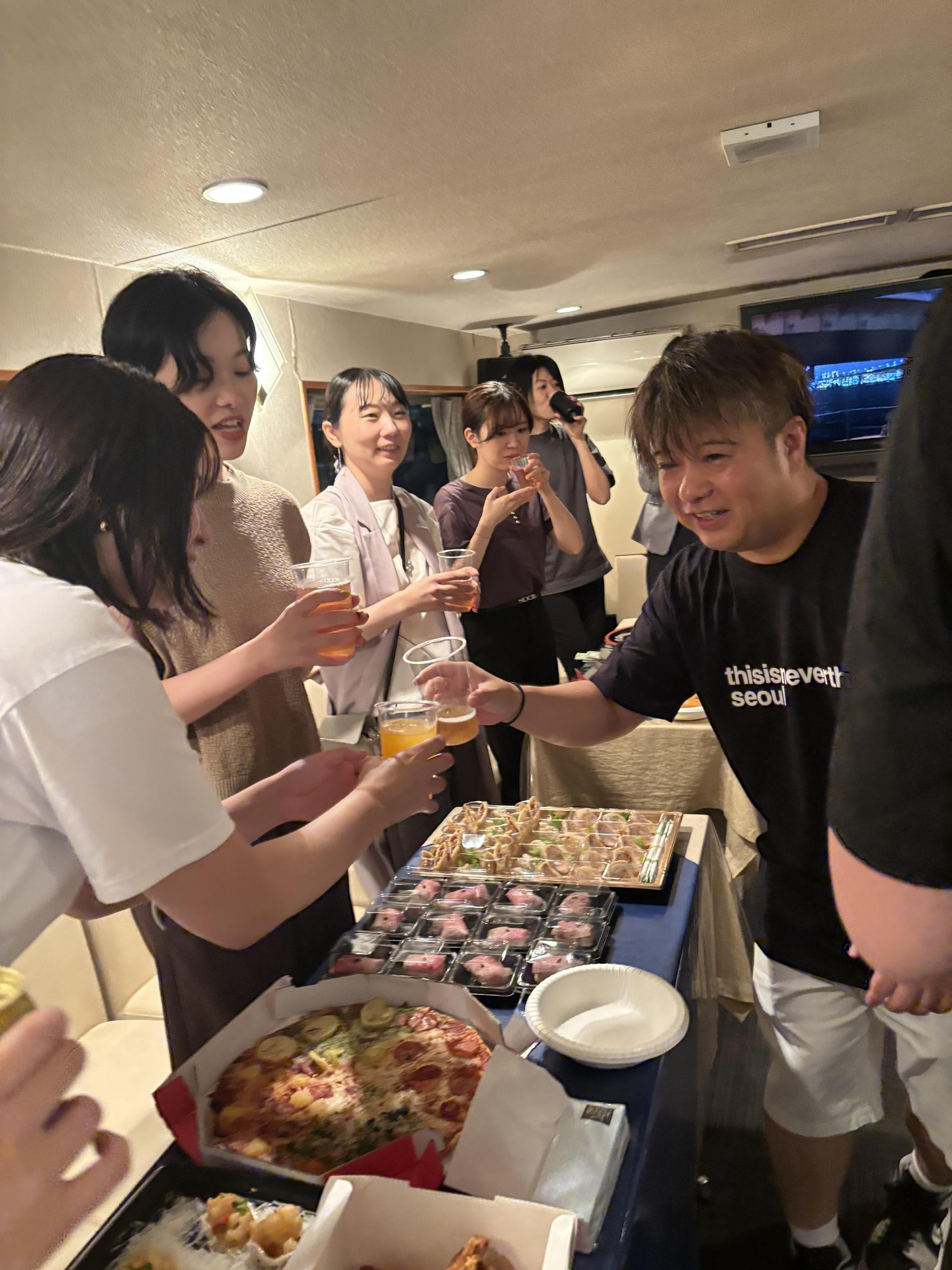 まずは社員総出で料理をセッティングし、乾杯です🍻
