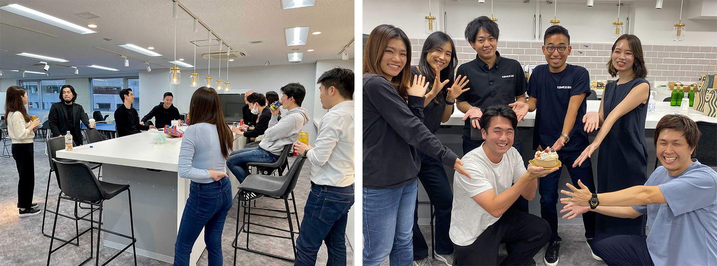現在は週2回までリモートワーク(週3日以上の原則出社)が認められており、各々のライフステージや好みに合わせ、はたらく場所を選ぶことができます。渋谷オフィスには白を基調とした開放的なイベントスペースもあり、週に1回程度、世界中からスタートアップや大手企業パートナー、イノベーションプラットフォームの構築に関わる関係者の皆さんを招待し、ミートアップやイベントを行っています。またオフィスにはミニバーがあり、終業後の社員の憩いの場になっています。もちろん、空いている時はイベントスペースで作業をすることもできます。オフィスとは思えないような居心地の良いソファや間接照明は社員に大好評です!